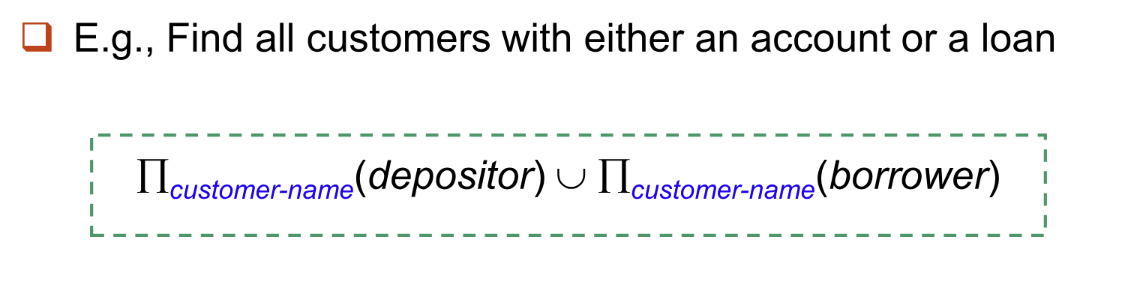 简单来说就是两个关系的并集。但是要进行并的操作,需要两个关系具有相同的属性数量和兼容的属性内容,简称为等目相容。